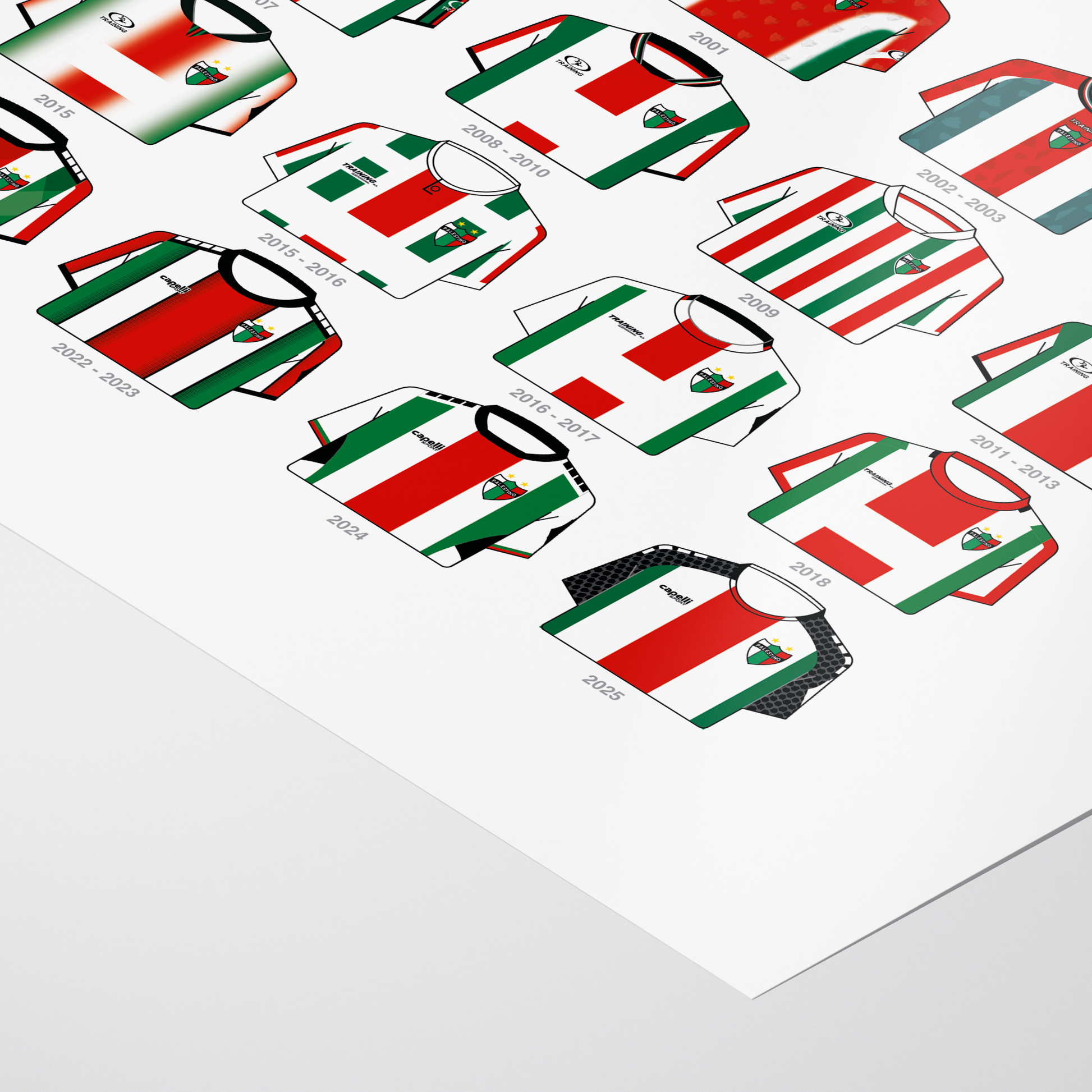 Poster de camisetas locales de Palestino en el fútbol profesional.